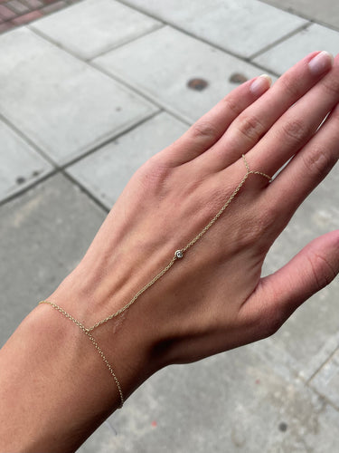 14K Yellow Gold and Diamond Bezel Hand Chain