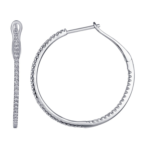 14K White Gold and Diamond Round Hoop Earrings