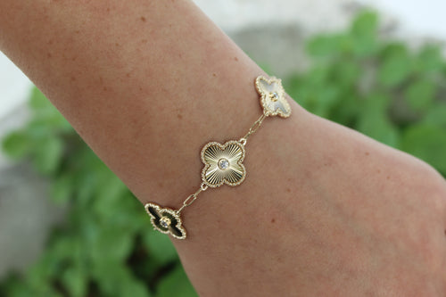 14K Yellow Gold Diamond Fluted Clover Large Bracelet