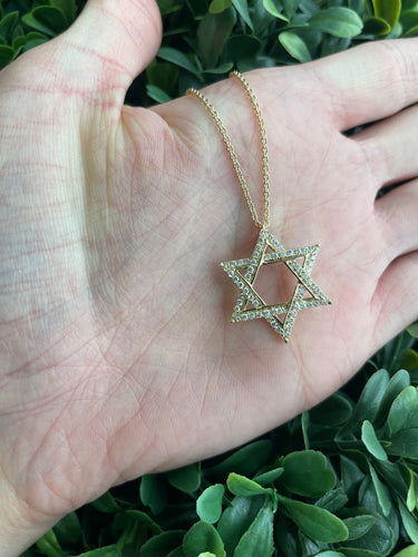 14K White Gold Diamond Star of David with Chai Charm Necklace
