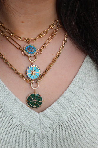 14K Yellow Gold Diamond Turquoise Compass Charm