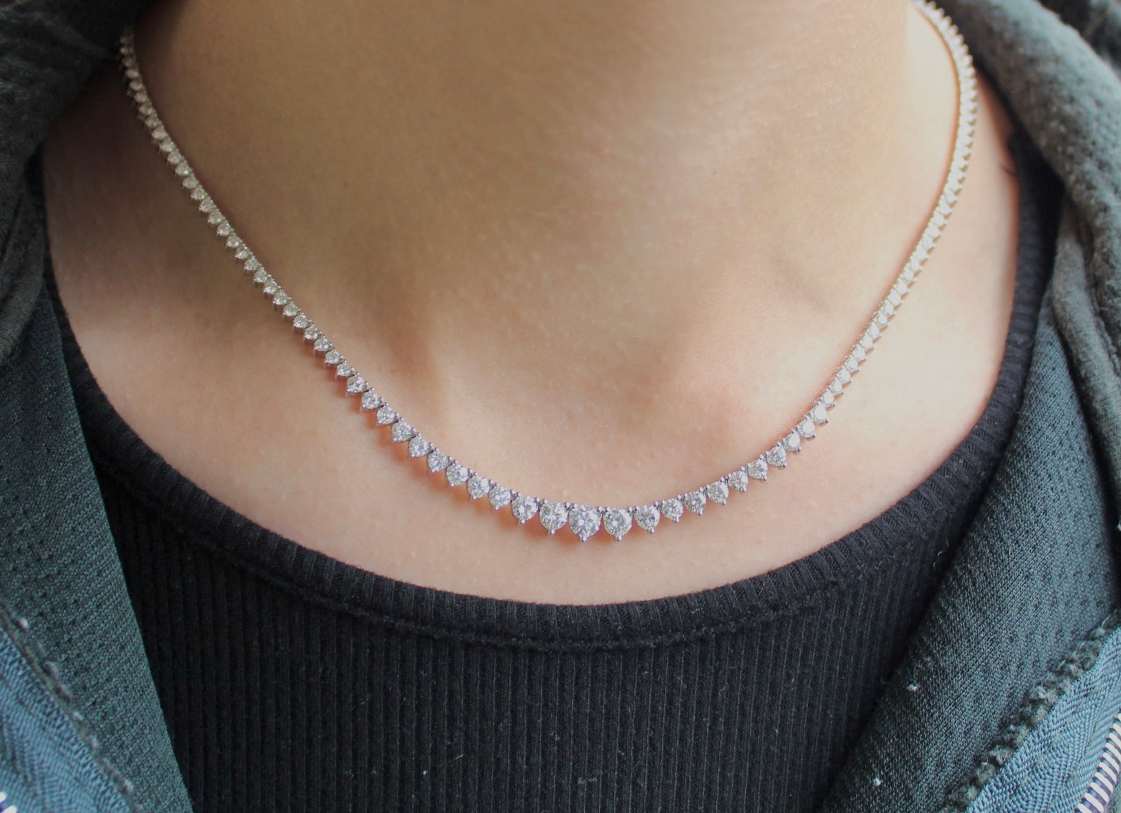 14K White Gold 6.38ct Graduated Diamond Tennis Necklace