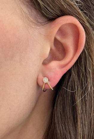 14K Yellow Gold Diamond Two Hole Huggie and Cluster Chain Earring (Sold As Single)