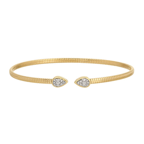 14K Omega Yellow Gold and Diamond Pear Open Bangle