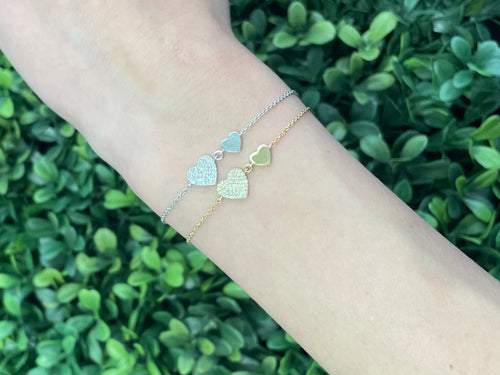 14K Gold Half Diamond Double Heart Bracelet