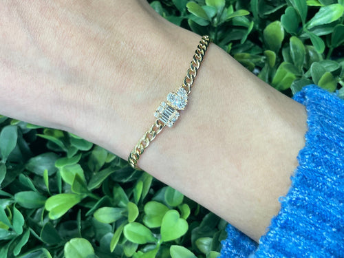 14K Yellow Gold Diamond Rectangle and Heart Center Cuban Bracelet