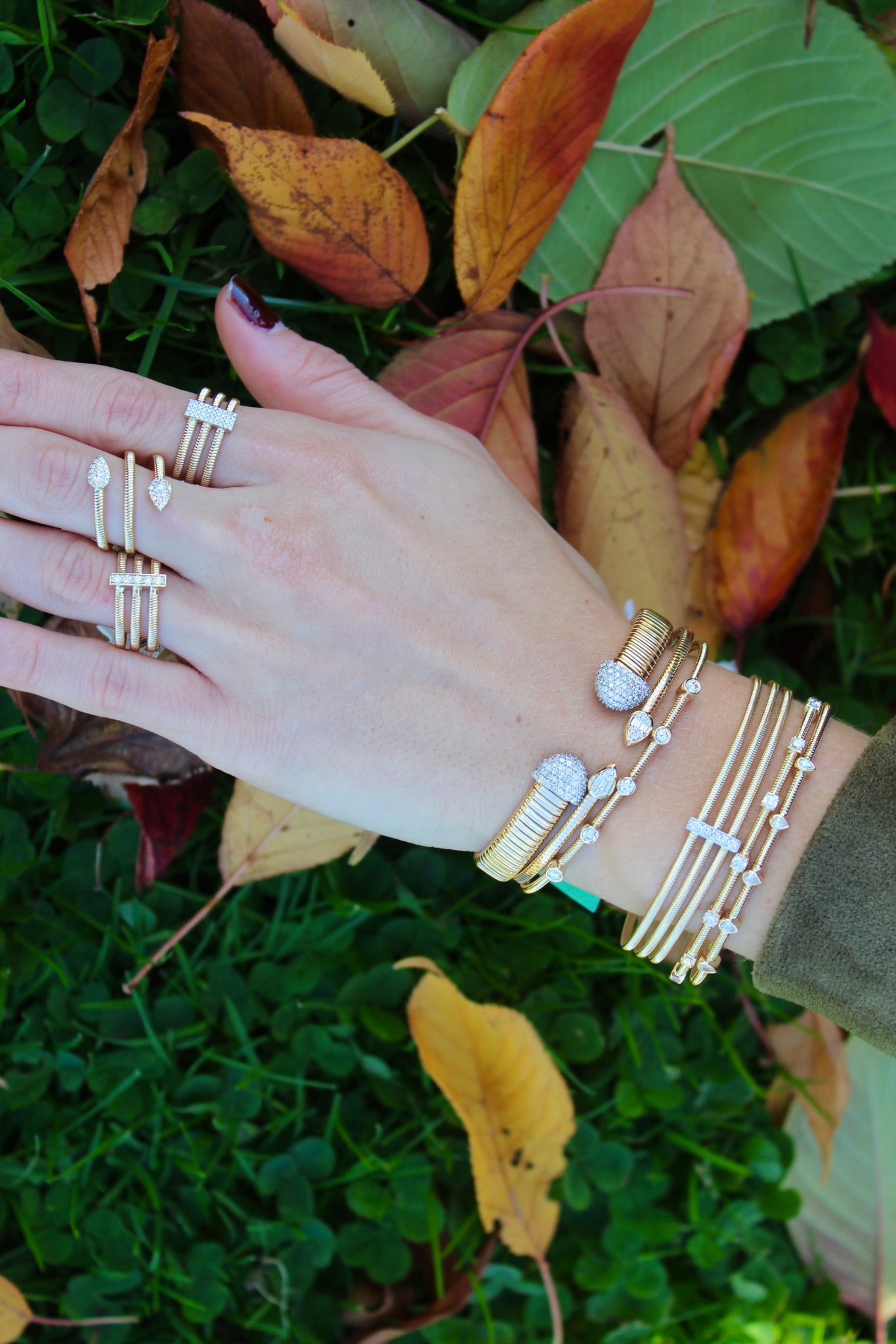 14K Yellow Gold Omega Chian Diamond Pear Wrap Ring