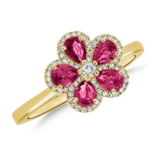 14K Yellow Gold Diamond Pink Sapphire Flower Ring