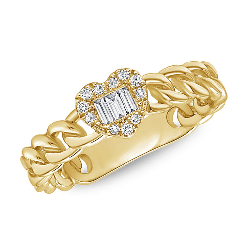 14K Gold Diamond and Baguette Crossover Cuban Ring