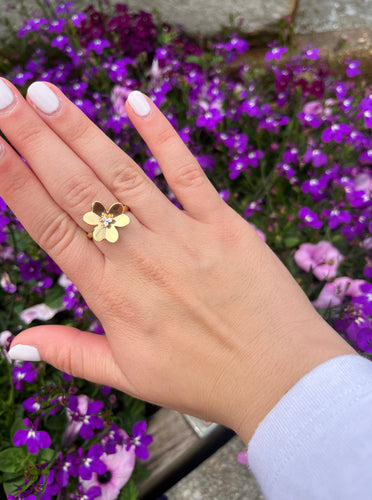 14K Yellow Gold Diamond Double Flower Blue and Pink Sapphire Ring