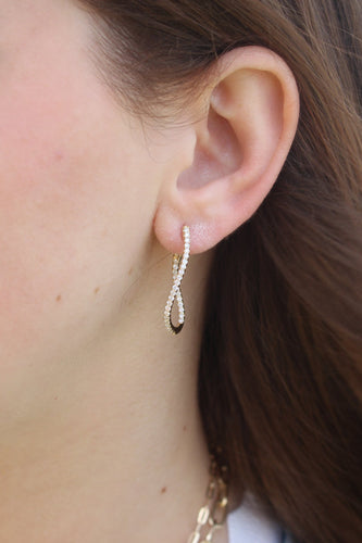 14K Yellow Gold White Topaz Bezel Drop Earrings