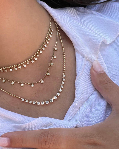 14K Yellow Gold Ball Chain Bezel Diamond Charm Necklace