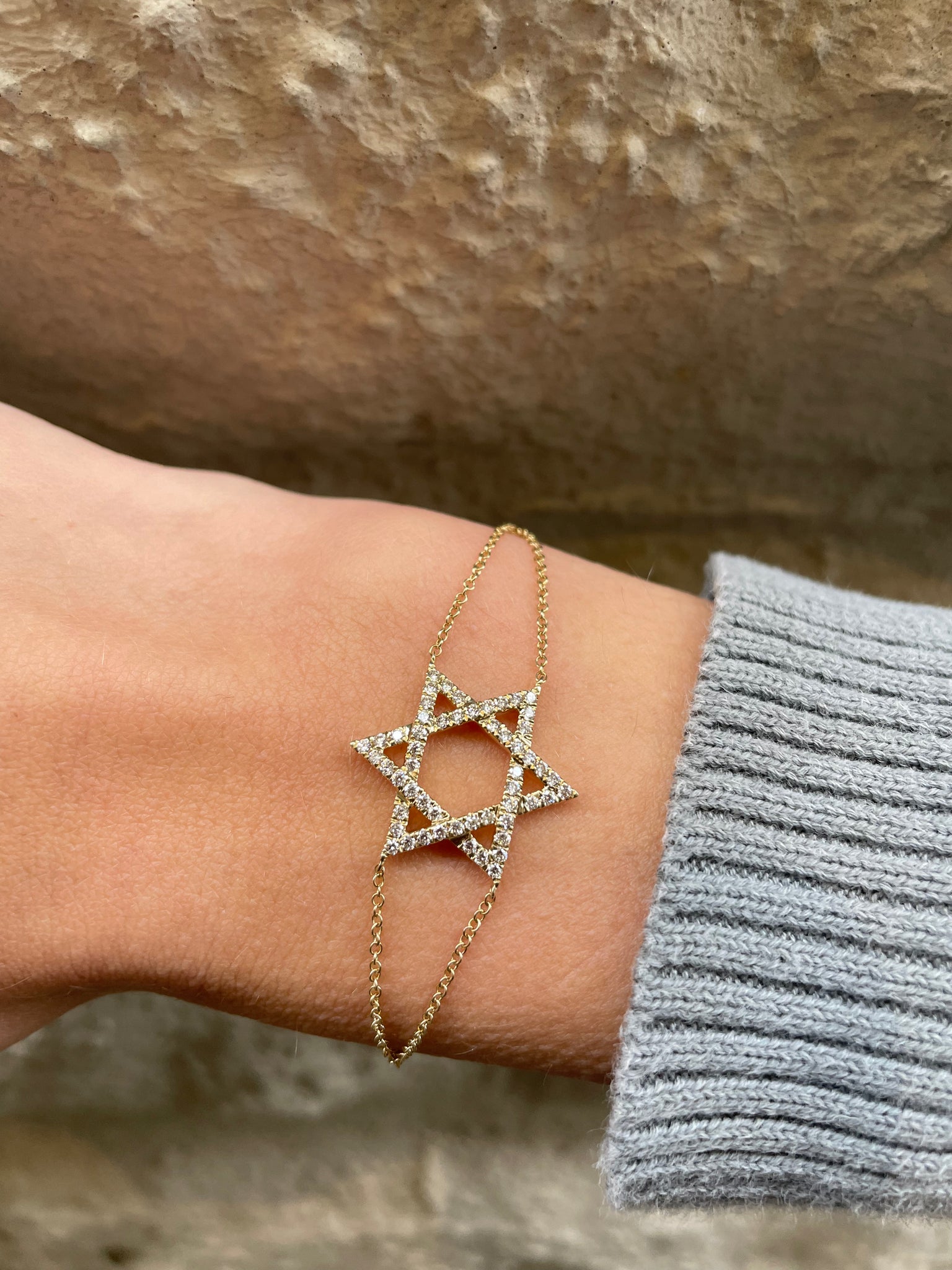 14K Yellow Gold Double Chain Diamond Star of David Bracelet